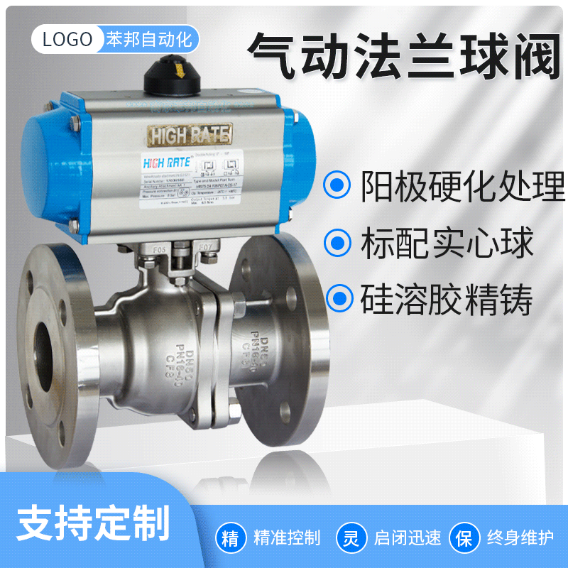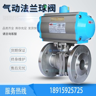 可定制氣動法蘭球閥Q64F304切斷閥O型軟密封法蘭氣動球閥